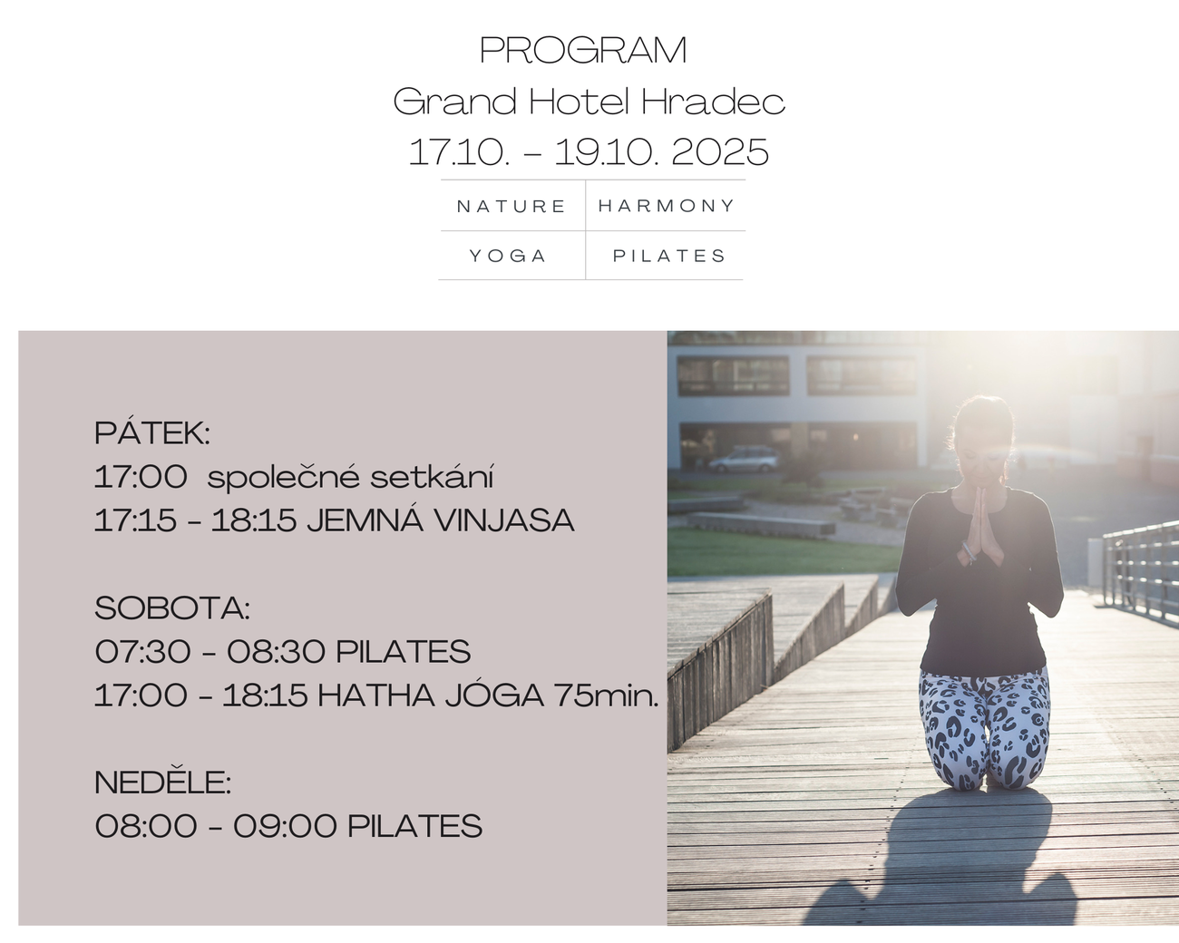 Říjnový pobyt v luxusním hotelu Grand Hradec se blíží. Zde naleznete program. Nezapomeňte si s sebou cvičební podložku 🤗🙏. Velice se na Vás všechny těším.